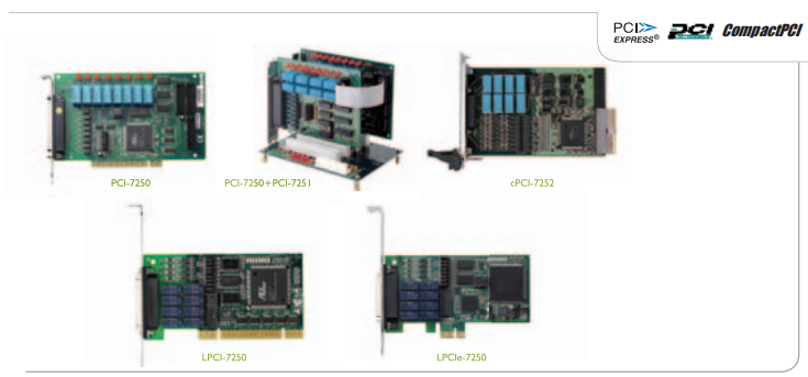 ■ PCI-7250 8通道繼電器輸出和8通道隔離數字輸入卡 (促銷時間:4.1-6.30) ■ PCI-7251 8通道繼電器輸出和8通道隔離數字輸入擴展卡, 適用于PCI-7250 ■ LPCI-7250 8通道繼電器輸出和8通道隔離數字輸入緊湊型PCI卡 ■ LPCIe-7250 8通道繼電器輸出和8通道隔離數字輸入緊湊型PCI Express卡 ■ cPCI-7252 8通道繼電器輸出和16通道隔離數字輸入模塊