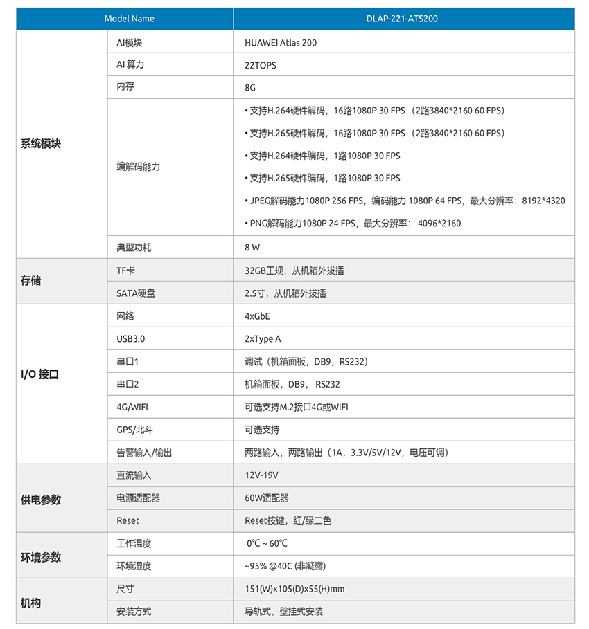 昇騰AI邊緣小站(AI視頻終端) DLAP-221-ATS200